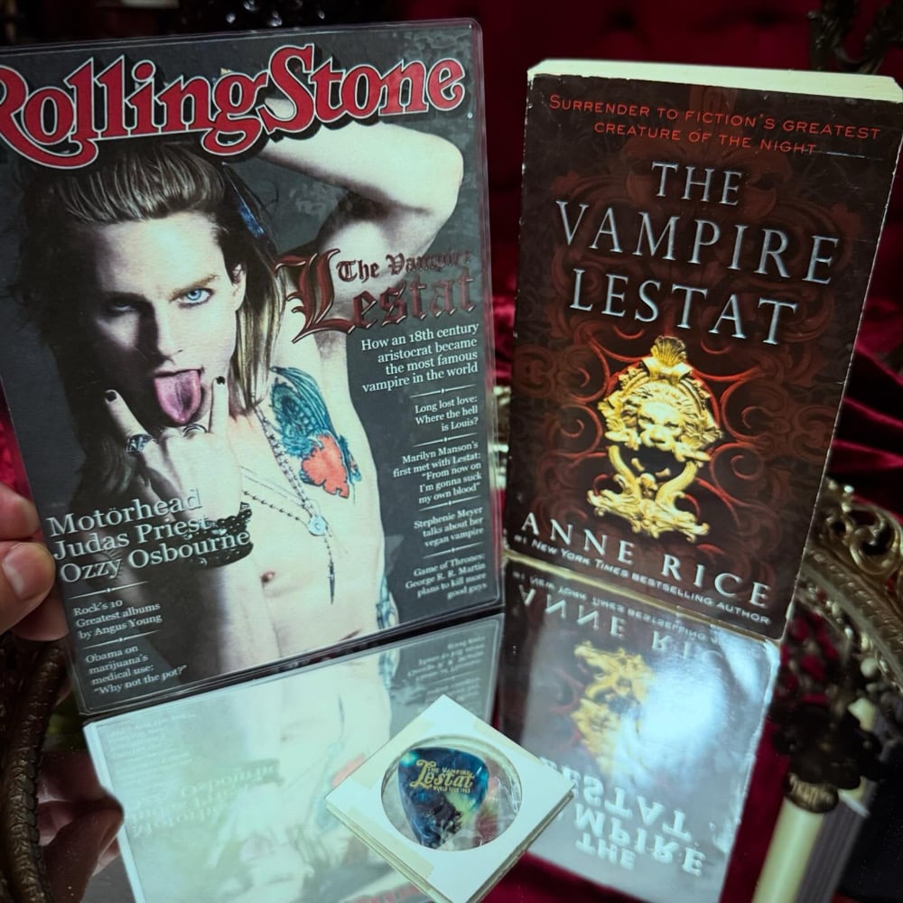 Includes a Very Rare Interview w/ The Vampire Movie Promo Guitar Pic that reads The Vampire Lestat World Tour 1985 / Wolfkiller. 2010 The Vampire Lestat Paperback & Laminated Print of Tom Cruise as Lestat on Rollingstone Cover.
